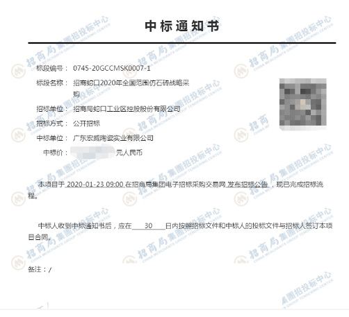 △招商局蛇口工业区控股股份有限公司中标通知书