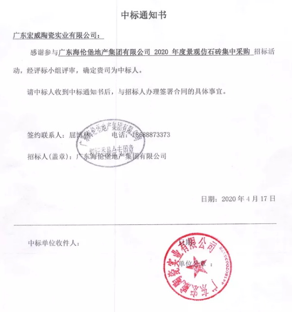 △ 广东海伦堡地产集团有限公司中标通知书