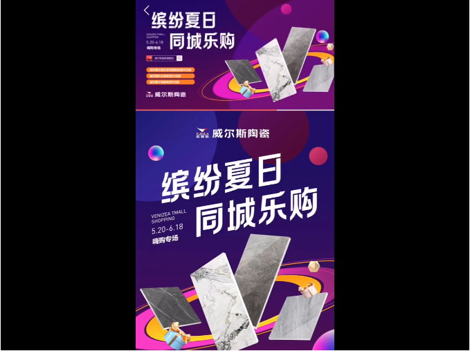 目前,威尔斯天猫旗舰店已投入运营使用,威尔斯为回馈广大消费者,特举办天猫商城钜惠“缤纷夏日 同城乐购”活动,与百城主播一起欢乐嗨购,敬请关注天猫威尔斯瓷砖旗舰店,勿要错过!